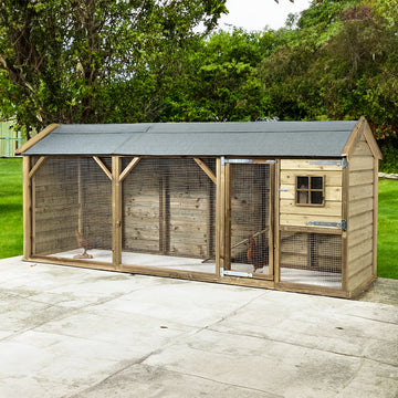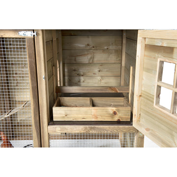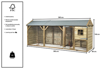 Het kippenhok wordt geleverd in prefab wanden en is eenvoudig te monteren met de meegeleverde handleiding. De sloten moeten nog worden aangebracht. De gemiddelde installatietijd is 3-5 uur. Een boor is nodig voor de installatie. Schroeven en het juiste boortje worden meegeleverd.