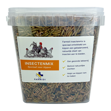 Farmidi Insectenmix is speciaal ontwikkeld om kippen een gebalanceerd, natuurlijk dieet van verschillende soorten insecten aan te bieden. Kippen zijn dol op deze insectenmix en zo kunt u uw kippen heel tam maken.