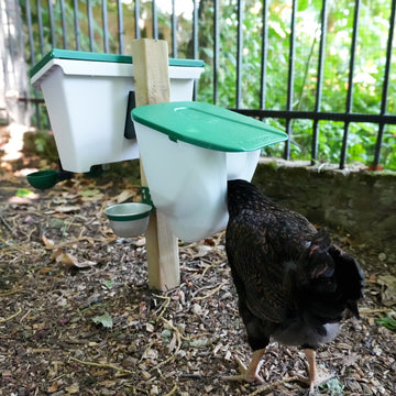 Handige tip: Sommige kippen hebben een korte wenperiode nodig. Door tijdelijk het tussenschotje te verwijderen, kunnen ze wennen aan de voerbak. Plaats het schotje weer terug zodra ze de bak goed gebruiken.
