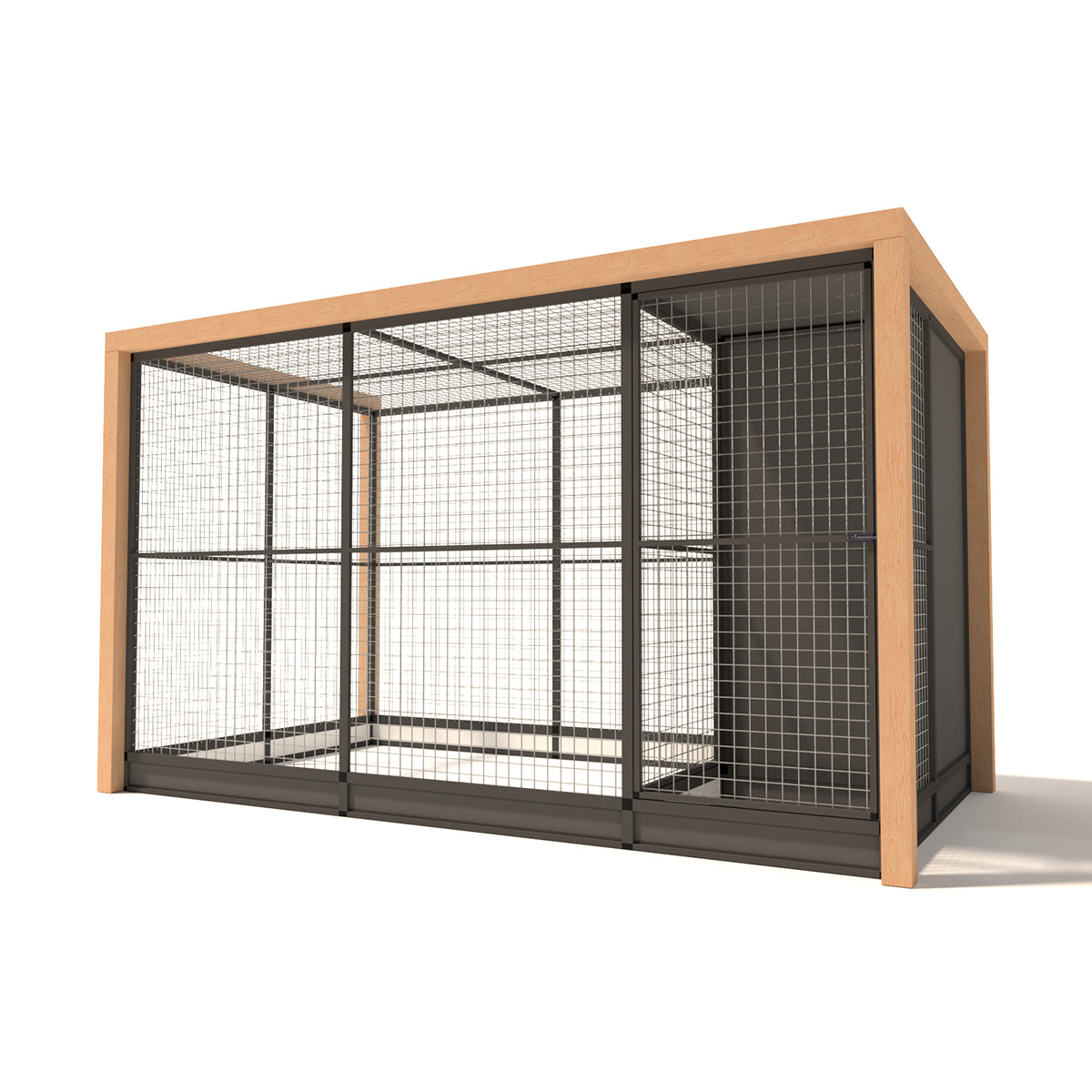 Wat Volière Alfred bijzonder maakt, zijn de mooie Douglas staanders, die een natuurlijke en stijlvolle uitstraling geven. Hierdoor heeft ieder model een hoogte van 202 cm, wat zorgt voor een open en ruimtelijk gevoel.
