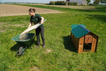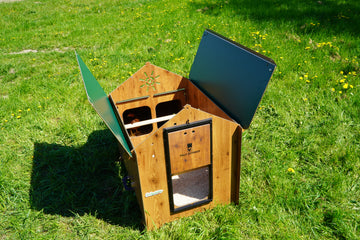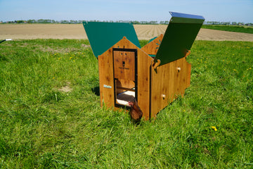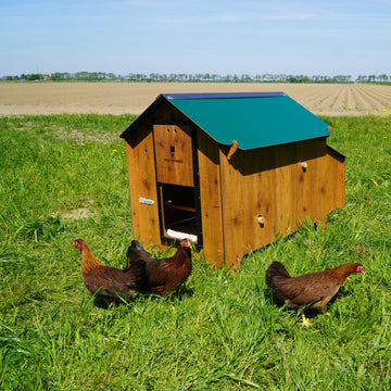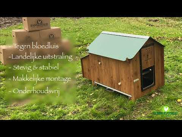 Het kippenhok wordt geleverd als bouwpakket en is makkelijk in elkaar te zetten. Door het slimme ontwerp is er geen gereedschap nodig en schuift en klikt alles eenvoudig in elkaar. Het wordt geleverd met de Polly Defender anti-roofdierdeur en een duidelijke handleiding. Dankzij het praktische design kun je zelf kiezen aan welke kant je de mestlade wilt uitschuiven.